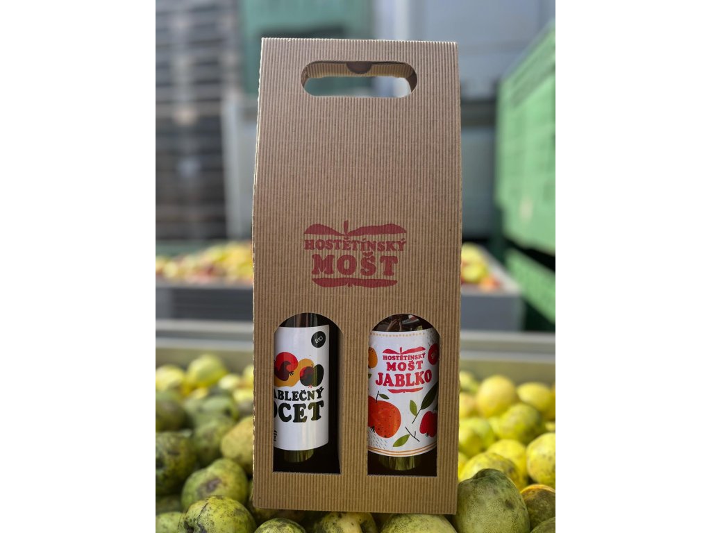 Dárkovou krabici na 2 lahve můžete použít nejen na mošty velikosti 0,75L. Do krabice se vejde ocet velikosti 0,5L nebo i sirup 0,5L. Určitě tak někoho potěšíte.